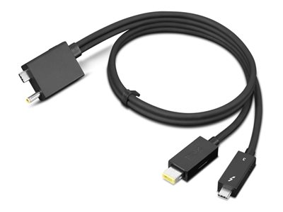 The Lenovo Thunderbolt 4 Workstation Dock Split Cable is dock split cable with 70cm (2'4") length, designed for ThinkPad Thunderbolt 4 WorkStation Dock by combining slim-tip power cable and Thunderbolt 4 cable.