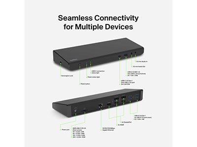 •  Product Description Belkin CONNECT Universal USB-C Triple Display Dock - docking station - USB-C - 3 x HDMI, 2 x DP - 1GbE