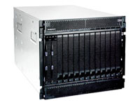 The IBM eServer BladeCenter is a key component in building your IBM eServer blades configuration. Its innovative 9U modular design delivers the performance density and reliability for adding scale and capacity in rack-optimized server infrastructures. And its flexible design can help dramatically lower the deployment costs of adding business-critical application capacity in centralized IT environments. The rack-optimized BladeCenter holds up to 14 hot-swap HS20 blades with up to six enclosures in a 42U rack. Its breakthrough chassis design provides redundant and hot-swap components, helping ensure maximum uptime by eliminating single points of failure.